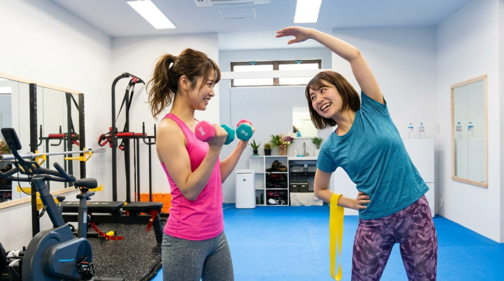 トレーナーが丁寧にフォームや負荷を調整し、無理なく筋力を強化。基礎代謝を高め、引き締まった体作りをサポートします。